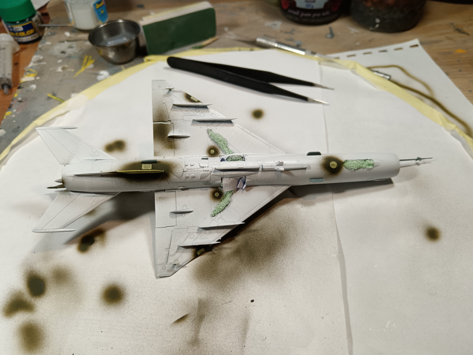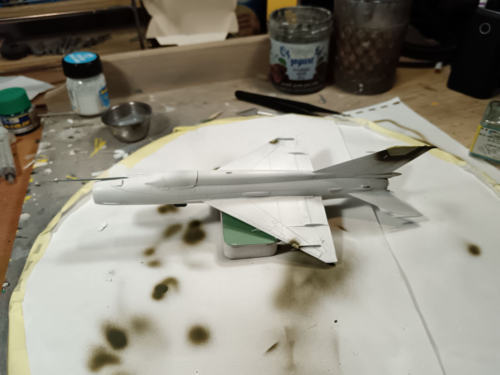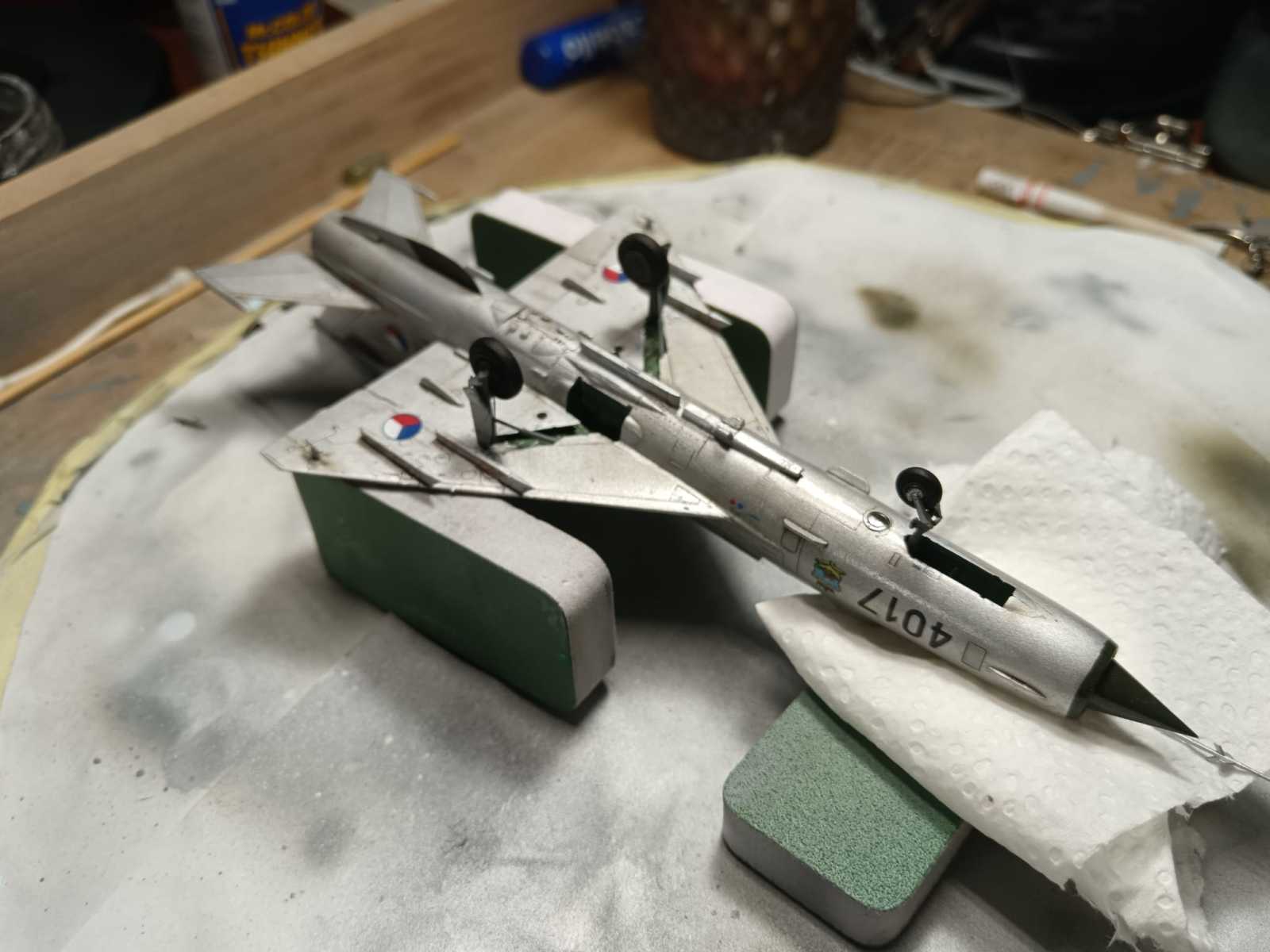 Další model, který jsem vytáhl z mého kytníku je MiG-21MF Interceptor od firm Eduard. Tuhle stavebnici jsme kopil téměř náhodu. Vůbec jsem jí nesháněl. Naskytla se mě příležitost v jednom bazaru na Fcb, kde majitel rozprodával svůj kytník. Cena byla super, tak model musel ke mě.